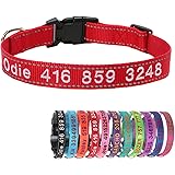 Yonsbox Red Reflective Custom Personalised Dog Collar Embroidered with Name Phone Number Quick Release Buckle for Boy Girl Small Medium Large Dogs