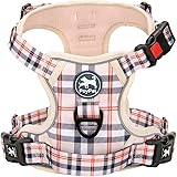PoyPet No Pull Dog Harness, No Choke Reflective Oxford Outdoor Vest, Adjustable Pet Harnesses with 2 Leash Clips,Easy Control Padded Handle for Small Medium Large Dogs (Checkered Beige,XS)