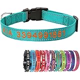 Yonsbox Cyan Reflective Custom Personalised Dog Collar Embroidered with Name Phone Number Quick Release Buckle for Boy Girl Small Medium Large Dogs